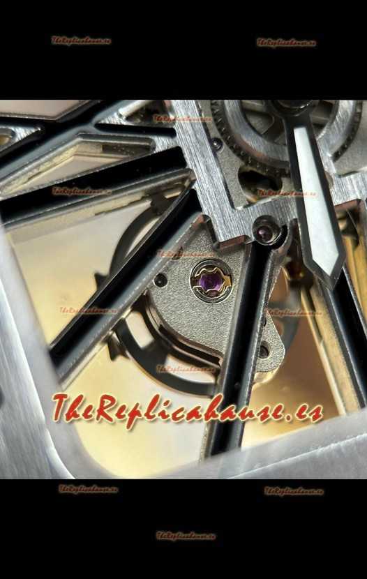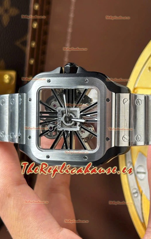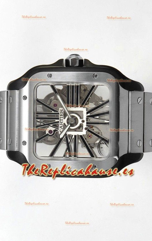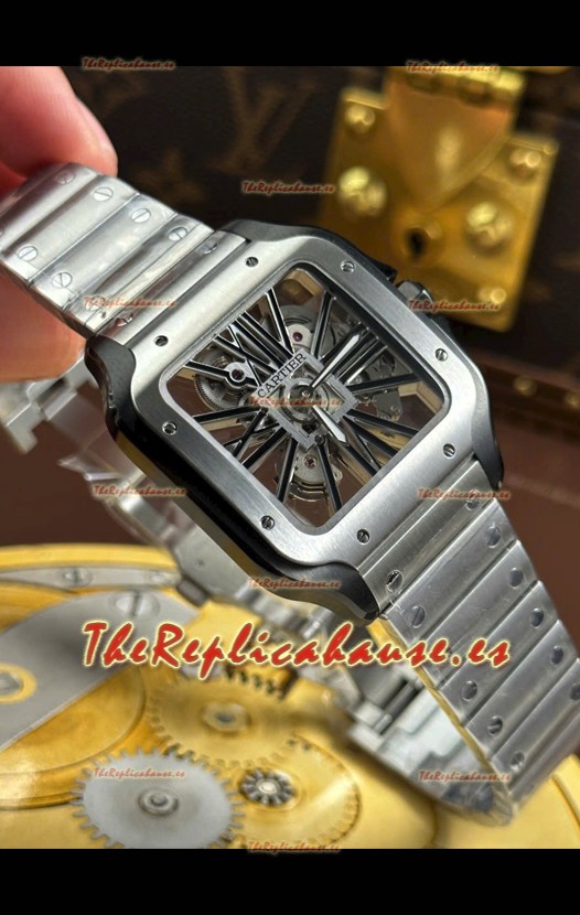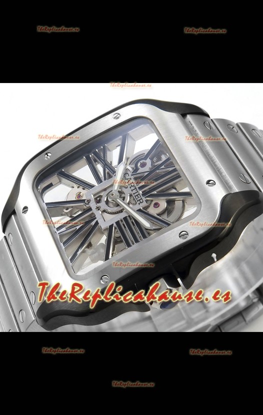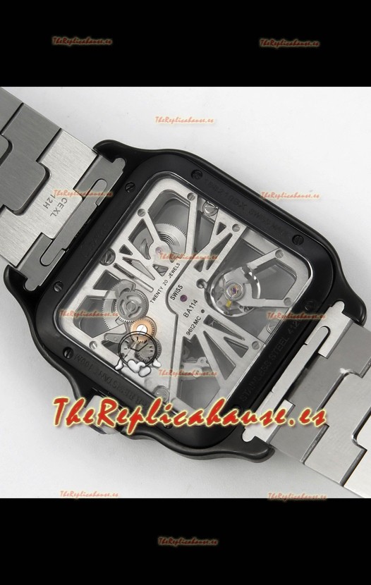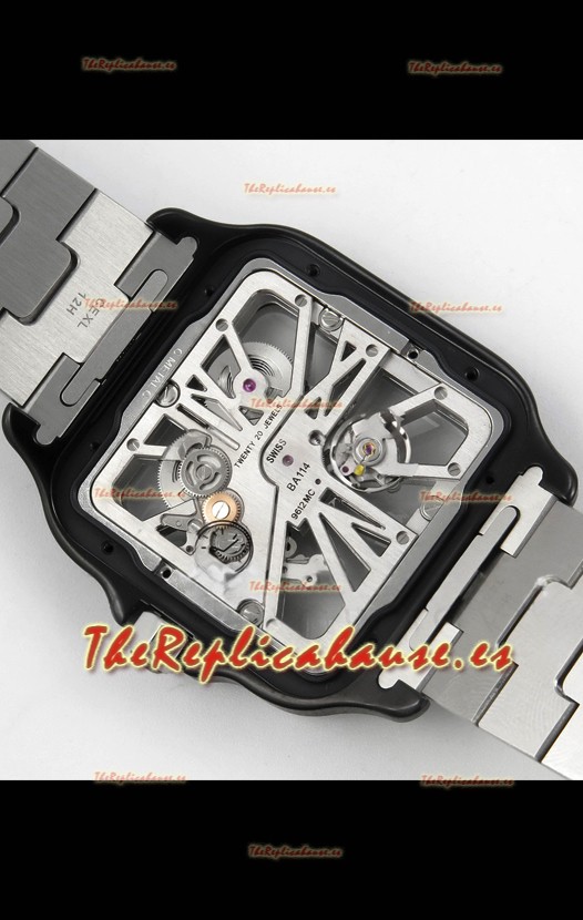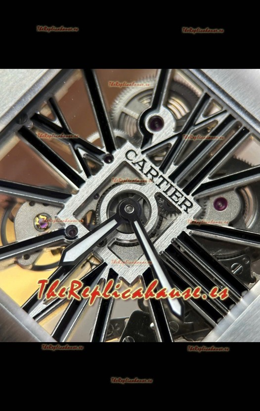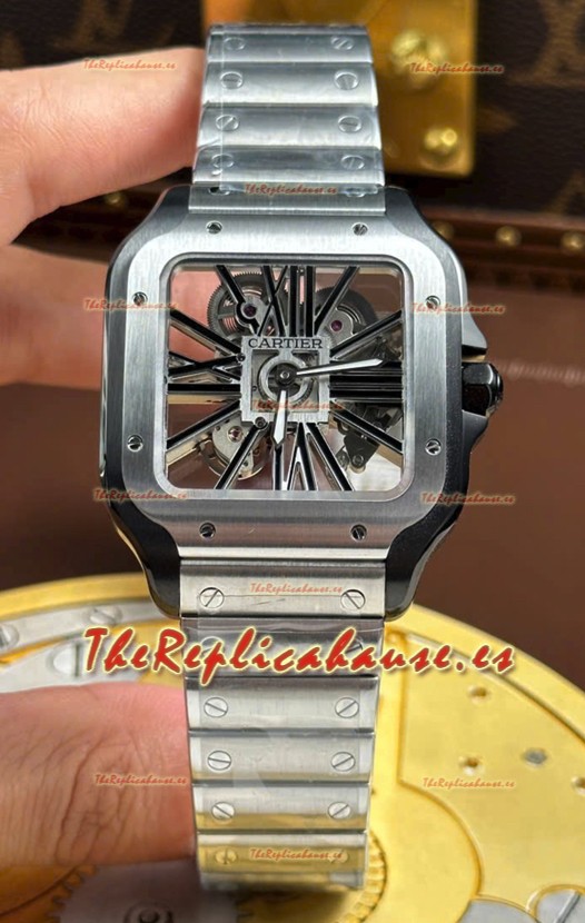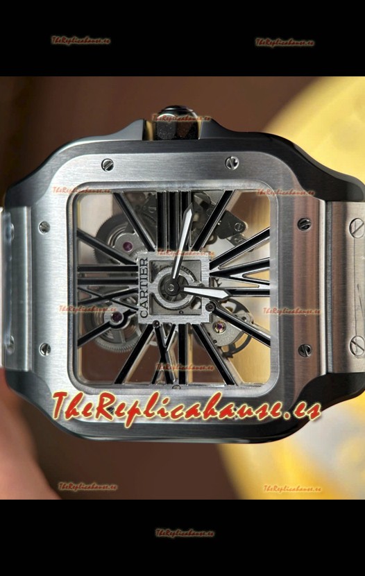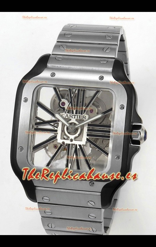 Santos De Cartier Reloj Super Clone en Dial Skeleton Cepillado Revestimiento DLC Coated Caja Acero