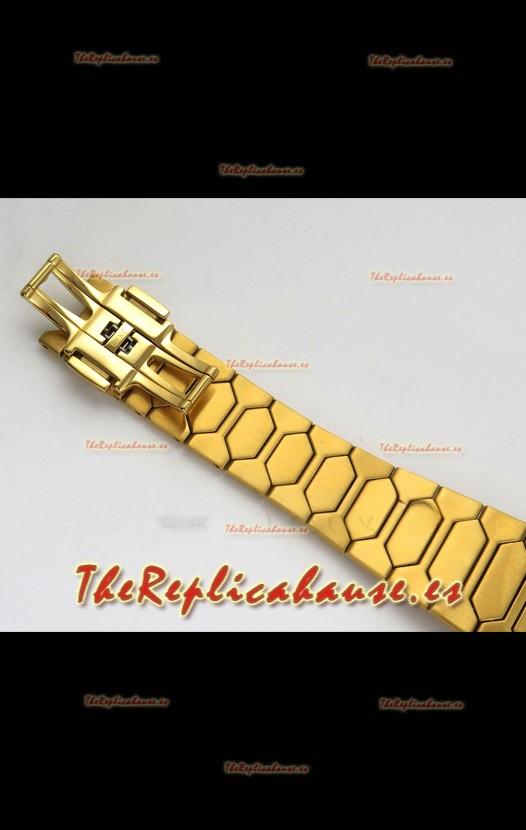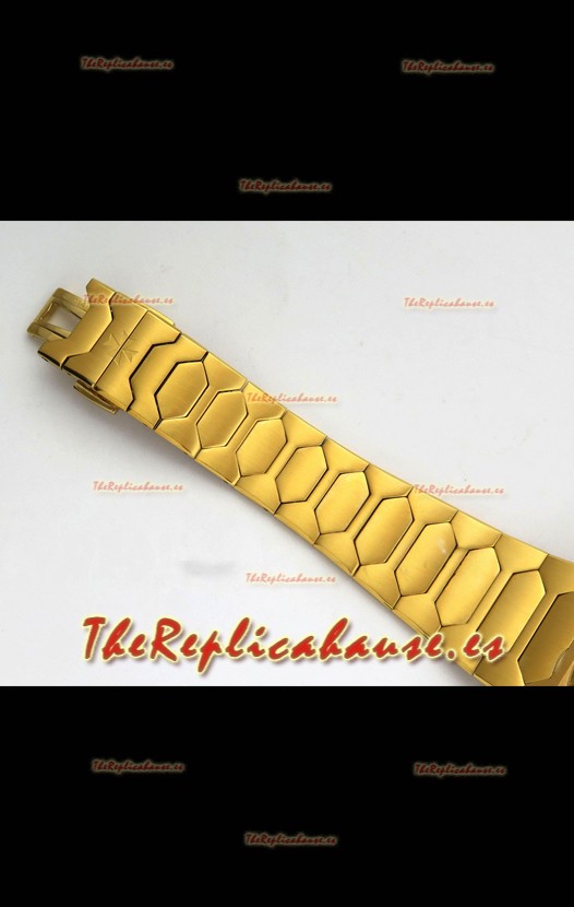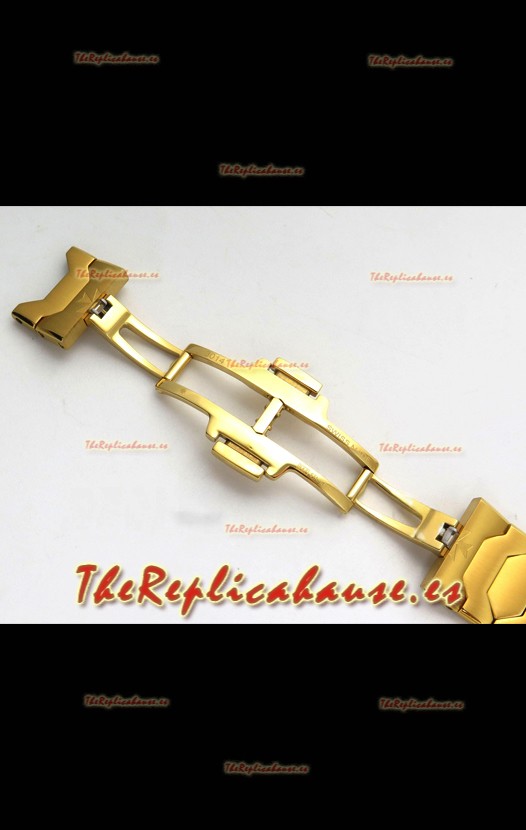 Correa de Acero Inoxidable 904L chapada en Oro Amarillo 18K con Cierre Plegable completada con todas las Marcas y Grabados como los Originales